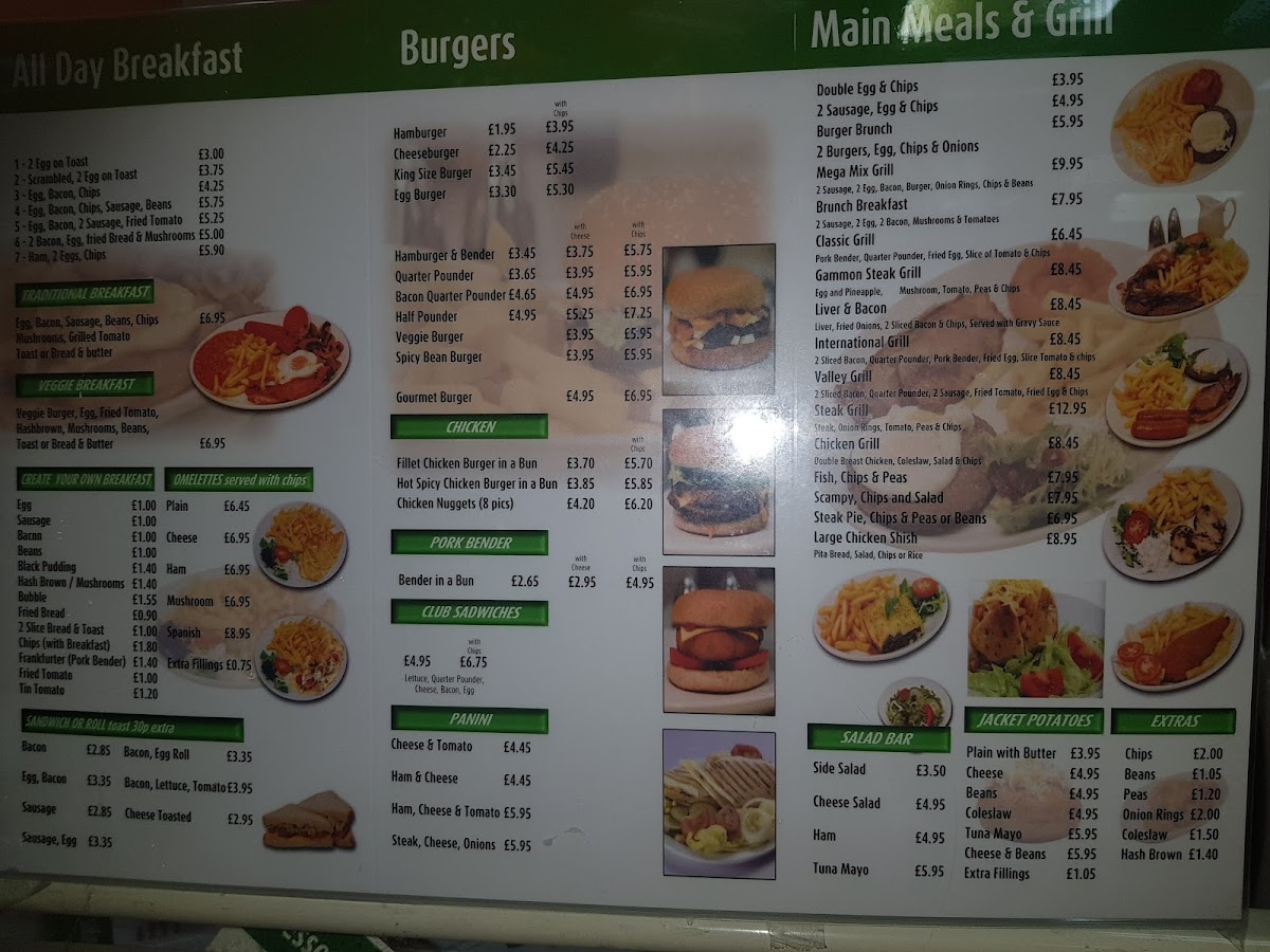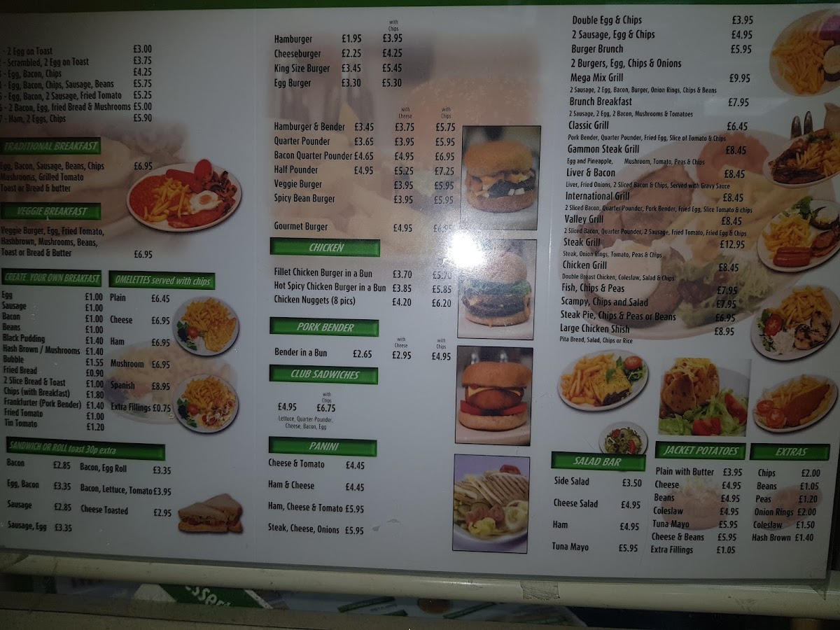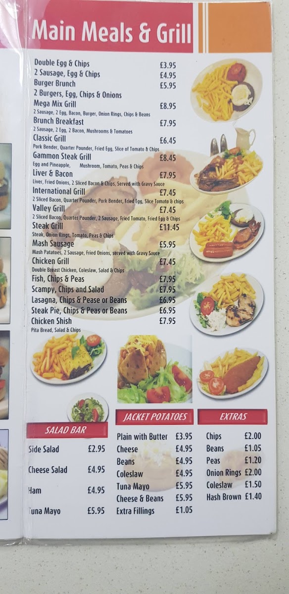 Valley Cafe specializes in traditional British fare, perfect for any time of day. Their Salad Bar offers delightful options like the zesty Cheese Salad and the satisfying Tuna Mayo. For those craving comfort food, the Extras are just what you need—crispy Onion Rings, classic Chips, or hearty Coleslaw are perfect companions to your meal.